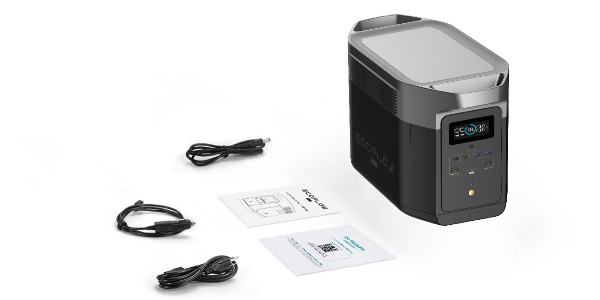 1.DELTA Max (1600/2000) 2. DC5521-DC5525 Cable 3. 1.5m AC Charging Cable 4. 1.5m Car Charging Cable 5. User Manual 6. Warranty Card